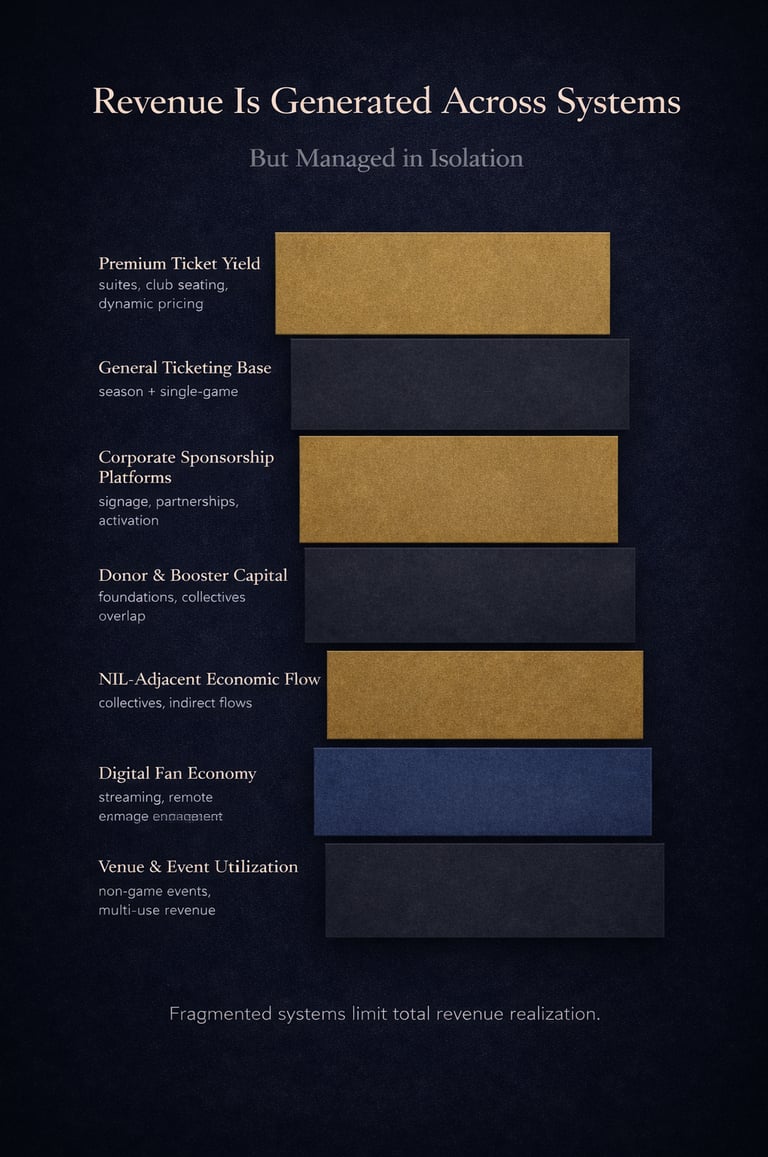 Most athletic departments are not constrained by demand. They are constrained by structure. Ticketing, sponsorship, NIL, donor engagement, and fan monetization are typically managed as separate functions. But revenue does not emerge from individual channels. It emerges from how those systems connect.